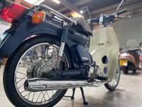 We are delighted to present this very tidy JDM 2002 Honda C50 Custom. The Custom C50 is the one with the square headlight and electric start as well as kick start.