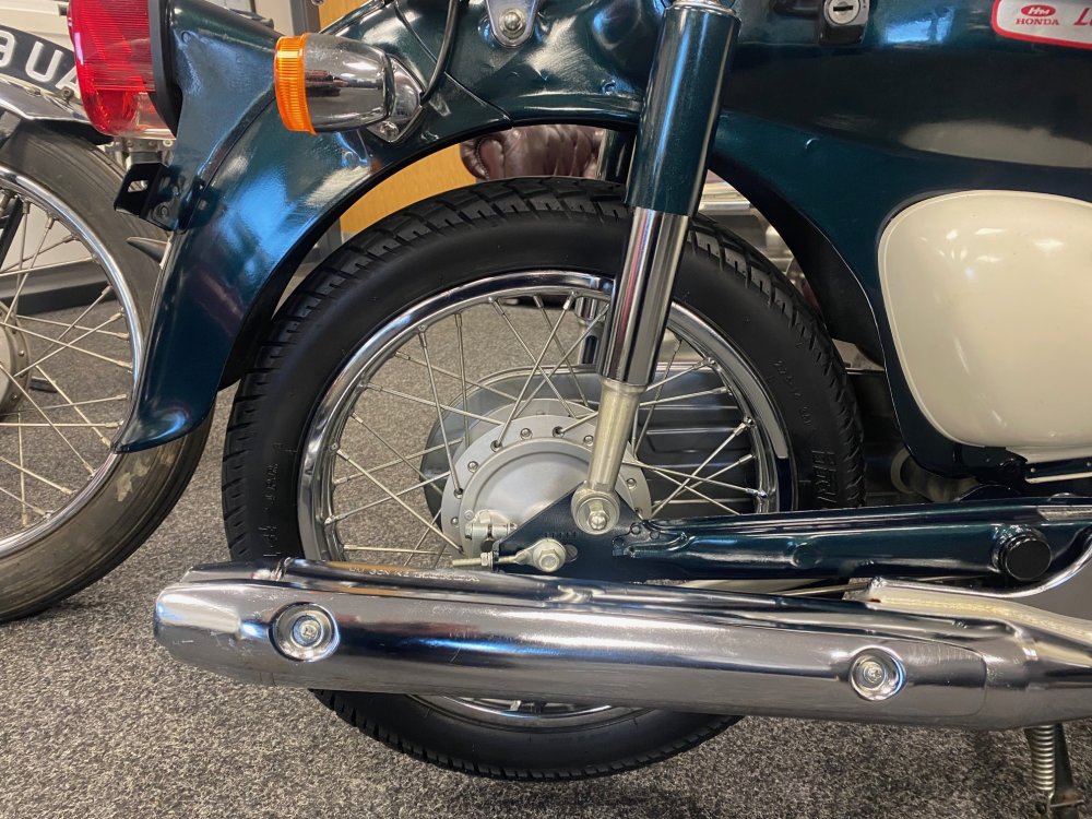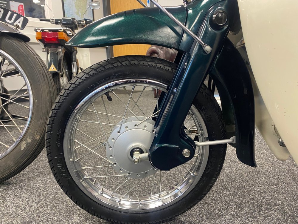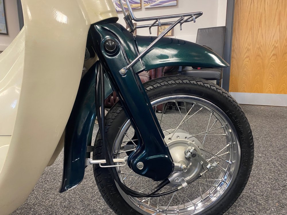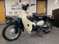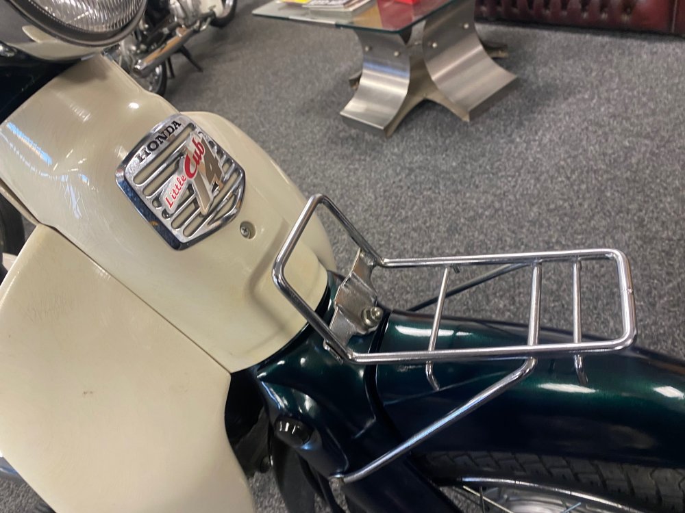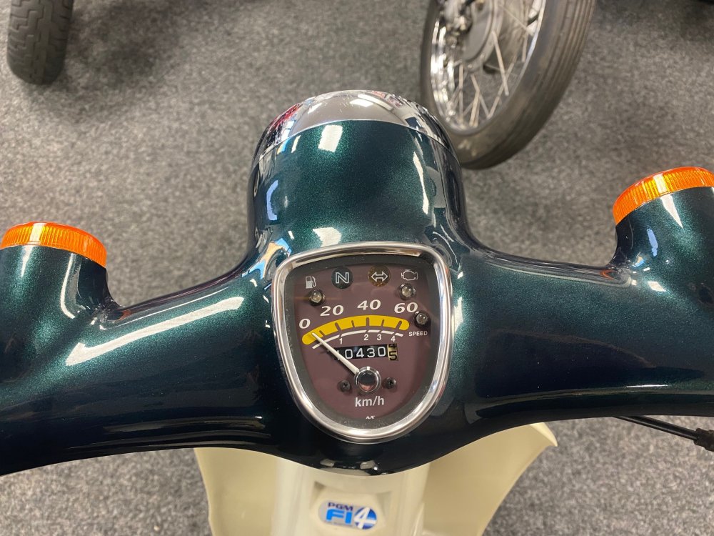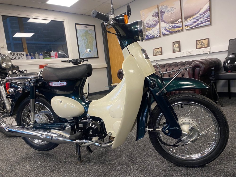A really beautiful Honda Little Cub in dark metallic green with white side covers. Lovely condition. Fuel injected and already UK registered.