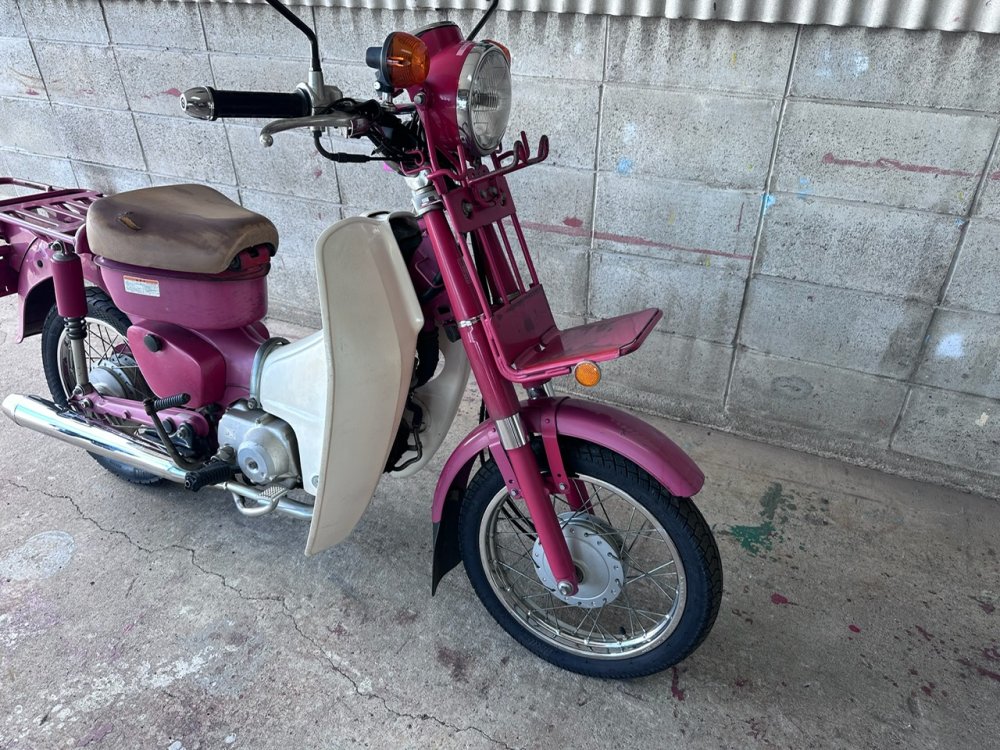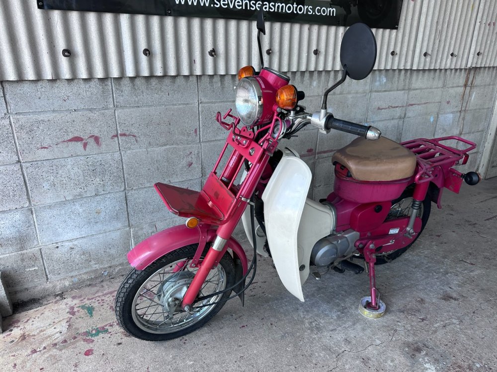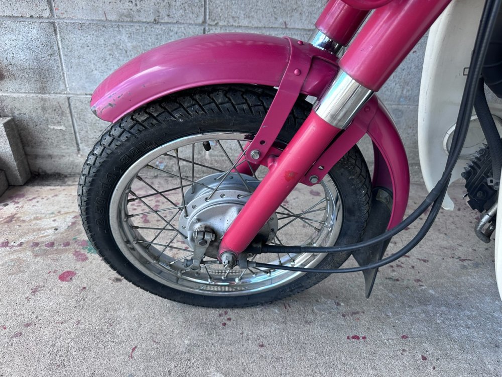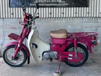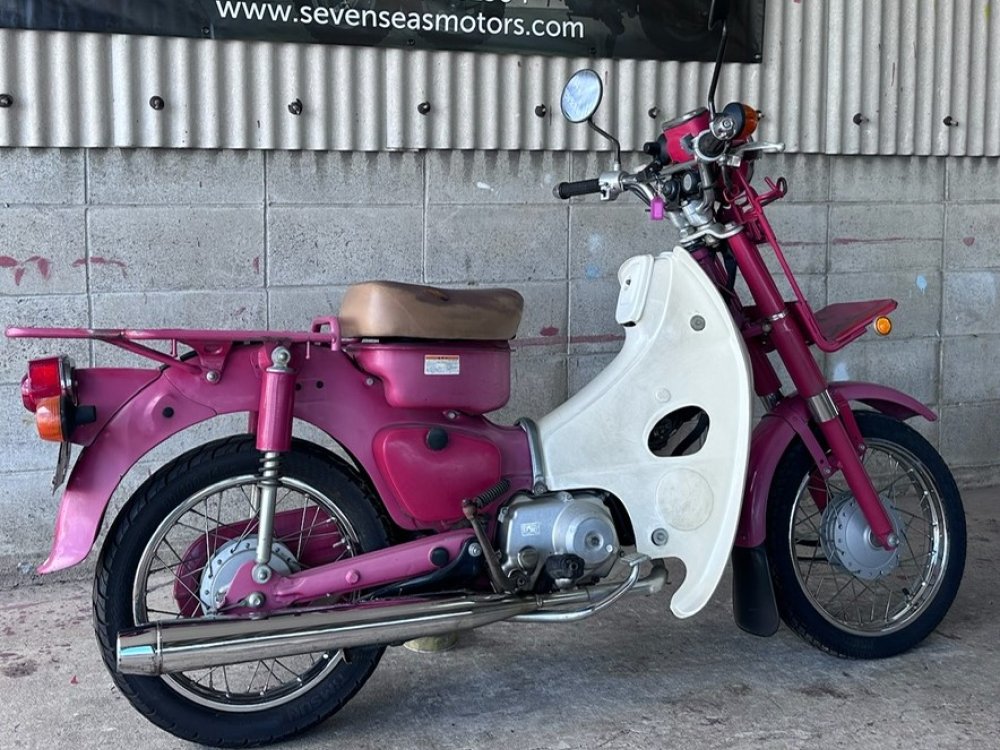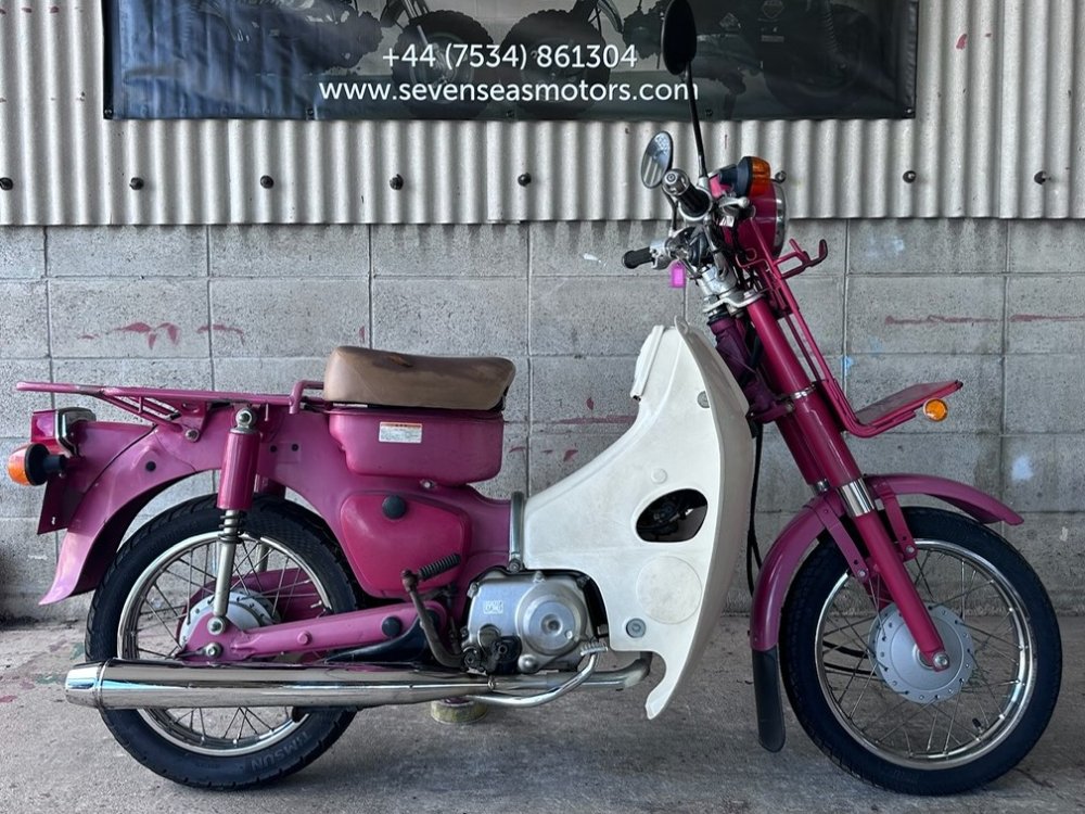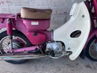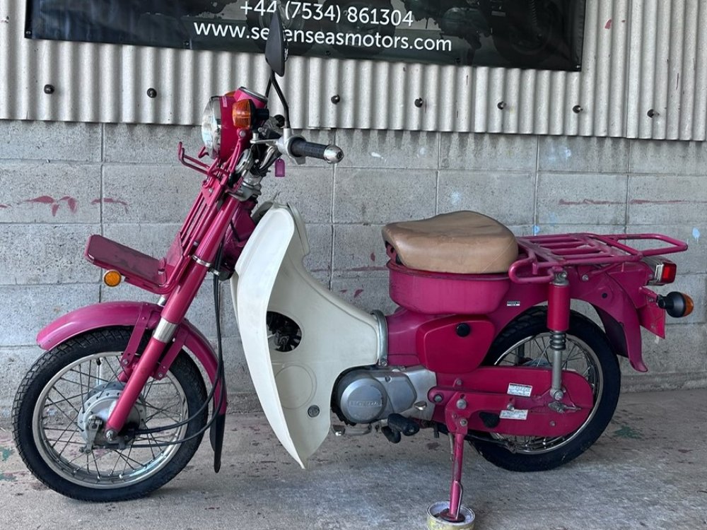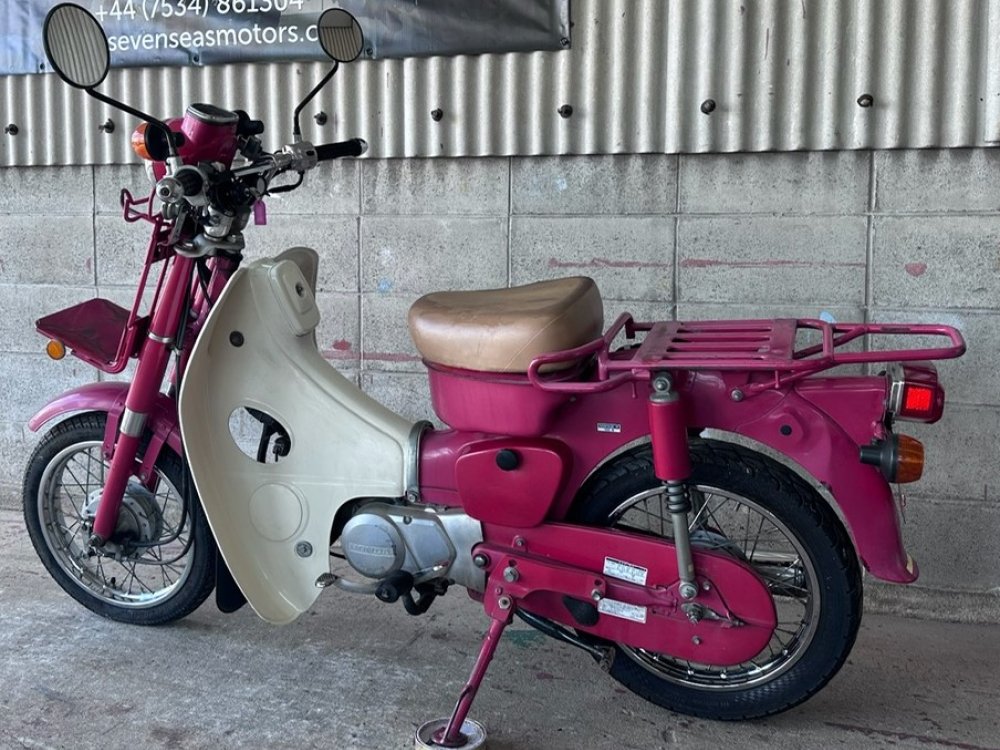 1999 Honda MD50 in red. It does look pink but we have been assured it is faded red. We can't wait to meet it. The bike is being sold AS IS so it will be assessed when it arrives and full details given. Arriving January 2026.